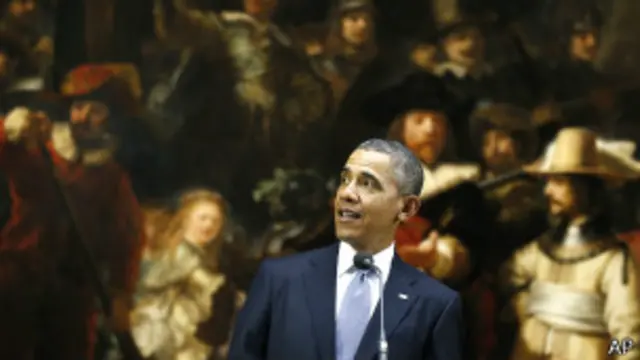 Amsterdam'daki Kraliyet Müzesi'ni gezen Obama, Hollanda Başbakanı Mark Rutte ile birlikte kısa bir açıklama yaptı.