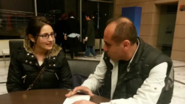 Öğrenci olduğunu söyleyen Özden Karabadan, “Oyumuza sahip çıkmaya geldik” diyor. Twitter’dan yardım çağrısını okuduğunu, mobil interneti olan bilgisayarını alarak partiye koştuğunu söylüyor.