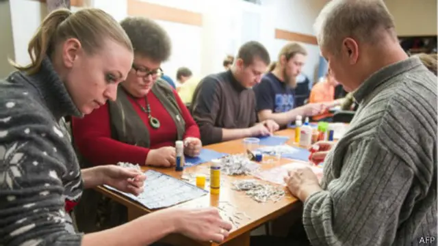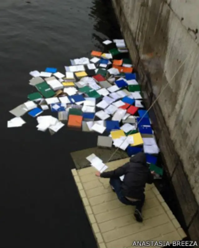Bigus, "İnsanlar aslında sadece kağıt yapıştırıyor ama atmosfer çok canlı. Tıpkı bir tartışma kulübü gibi. Geçen hafta bir çift vardı örneğin, beraber sinemaya gitmek yerine buraya kağıt yapıştırmaya gelmişler – gönüllülük bu günlerde Ukrayna’da tercih edilen bir şey” diye konuşuyor.