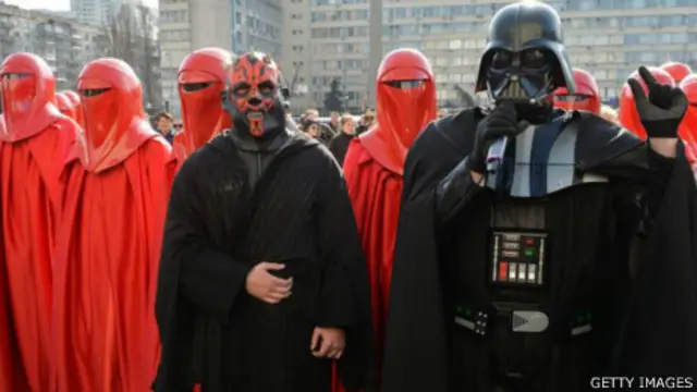 Cumhurbaşkanlığı için Ukrayna İnternet Partisi tarafından aday gösterilen "Darth Vader" görünümlü kişiye genelde Star Wars filminin diğer karakterleri gibi giyinmiş kişiler eşlik ediyor.