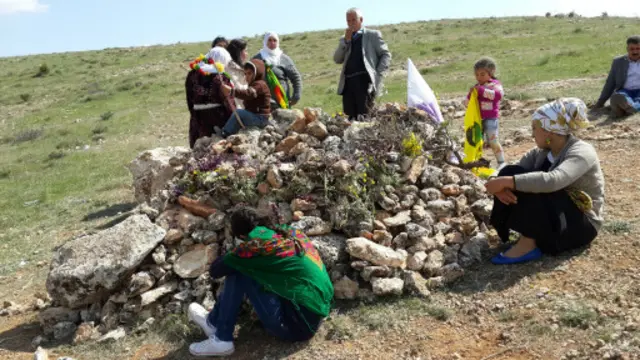 Tepenin başında iki gencin yaşamını yitirdiği noktalarda taşlar bir araya getirilerek temsili bir mezar oluşturulmuş.