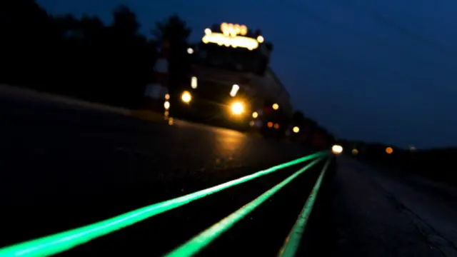 "Akıllı yolda", özel bir boyayla boyanan yol şeritlerinin gündüz depoladıkları ışık, gece 8 saate kadar yolu aydınlatabiliyor.