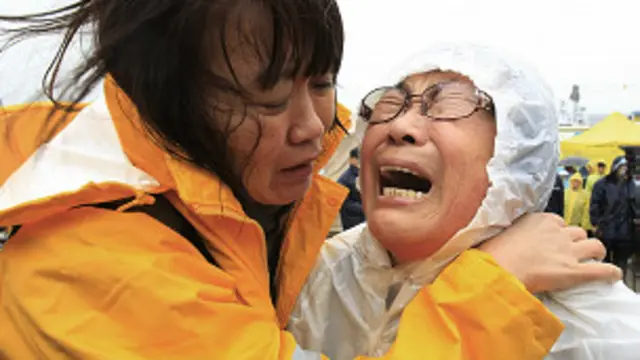 Jindo'daki BBC muhabiri Martin Patience, bazı ebeveynlerin kontrolsüzce hıçkırdığını aktarıyor.