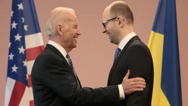 Kiev'de bir araya Biden ve geçici hükümetin Başbakanı Arseniy Yatsenyuk, ortak basın toplantısı düzenledi. Biden, Ukrayna'nın toprak bütünlüğünün korunmasının önemine dikkat çekti ve Rusya'yı geçen hafta İsviçre'nin Cenevre kentinde varılan anlaşmanın hükümlerine uymaya çağırdı.