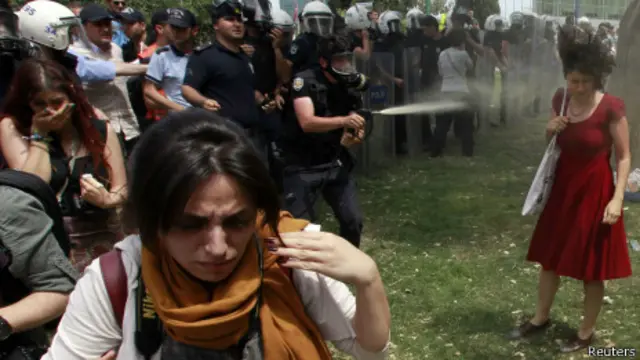 Raporda Gezi Parkı protestoları için ise, “Erdoğan hükümetinin zorbaca tepkisi giderek otoriterleşen eğilimini gözler önüne serdi” yorumu yapılıyor ve “Hükümet yetkililerinin suçlamaları twitter kullanıcılarından özel şirketlere ve sözde uluslararası lobilere kadar uzandı” deniyor.