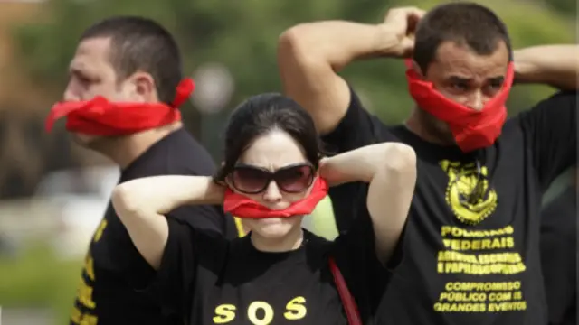 Rio'daki protesto gösterilerinde bazı polis memurları ağızlarını kırmızı fularlarla bapkadı ve "Federal polis SOS veriyor" yazılı t-shirtler giydi.