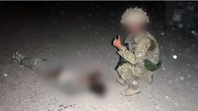 İngiliz Kraliyet Hava Kuvvetleri'nde görevli bir askerin, Taliban militanına ait cesedin yanında poz verirken çektirdiği fotoğraflar ortaya çıktı.