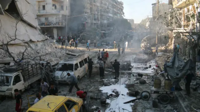 Halep'in üstüne düzenli olarak varil bombaları atılıyor.