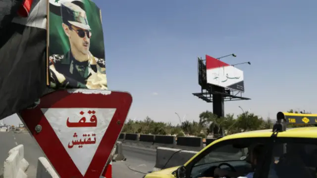 Şam'daki panolardan birinde "Aslanların baktığı gibi" diye yazıyor.
