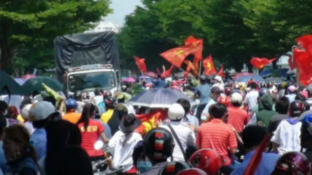 Protestocular, Çin'in Güney Çin Denizi'nde Vietnam'ın hak iddia ettiği sularda bu ayın başlarında bir sondaj platformu kurmasını protesto ediyor.