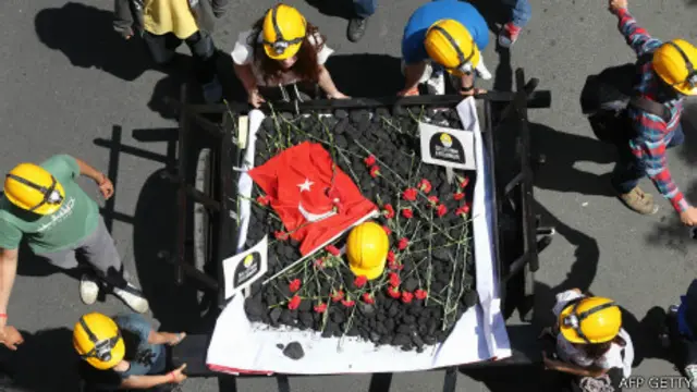 301 madencinin 14 gün önce gerçekleşen faciada hayatını kaybettiği Soma'da maden işçileri, Türkiye Maden İş Sendikası Ege Şubesi'nin önünde toplanmış ve sendikayı protesto etmişti.