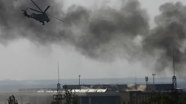 Bölgedeki BBC muhabirleri, havalimanı çevresinde silah seslerinin devam ettiğini belirtiyor.