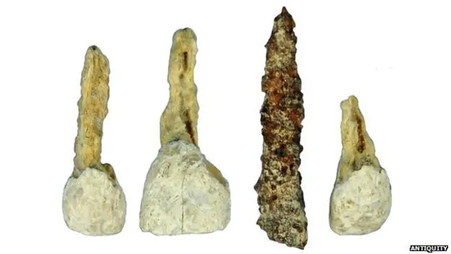 Demir çivinin kemik veya ahşaptan yapılma dişi sabitlemek için kullanıldığına dair kesin bir kanıya da varılamıyor çünkü her iki malzeme de asitli toprakta erime özelliğine sahip.