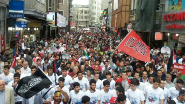 Gazze'ye yardım götüren Mavi Marmara filosuna İsrail ordusunun operasyon düzenlediği ve 10 kişinin öldüğü saldırının dördüncü yıldönümü İstanbul'da düzenlenen yürüyüşle anıldı.