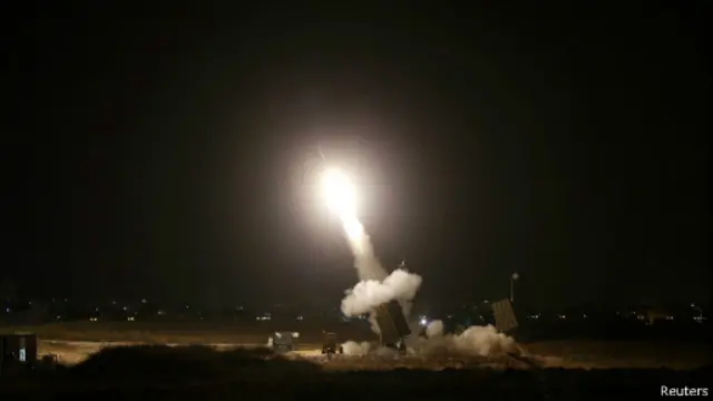Hamas üyeleri tarafından ateşlenen roketlerin büyük kısmı İsrail'in hava savunma sistemi tarafından havada imha ediliyor.