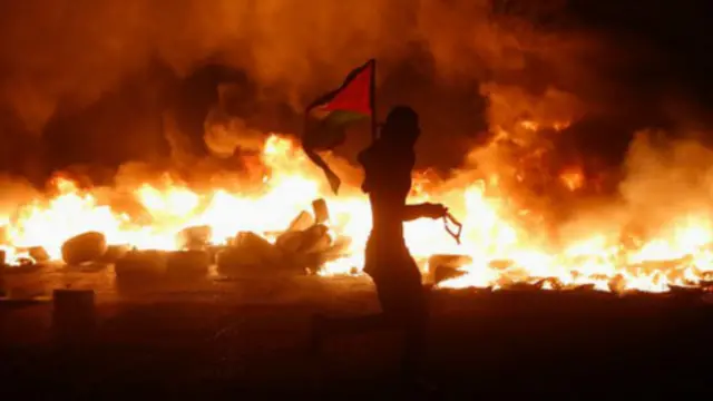 Gazze'ye destek için Ramallah'tan Kudüs'e yürümek isteyen yaklaşık 10 bin Filistinli, Kalendiye askeri kontrol noktasında İsrail askerleri tarafından durduruldu.