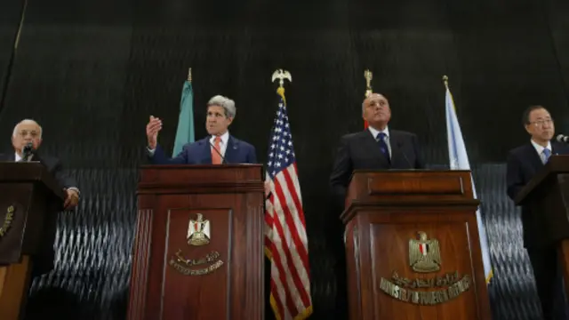 ABD Dışişleri Bakanı Kerry, Mısırlı mevkidaşı, Birleşmiş Milletler ve Arap Birliği Genel Sekreterleri hep birlikte Kahire'deki Fairmont Hotel'de kameraların karşısına geçmeden sadece dakikalar önce İsrail hükümetinin ateşkes teklifini reddettiği haberi İsrail medyasının manşetlerine taşındı.