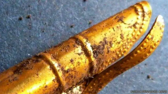 Kirkhaugh'daki kazıya katılan çocuklar toprağın içinde parlayan bir altın gördüler.