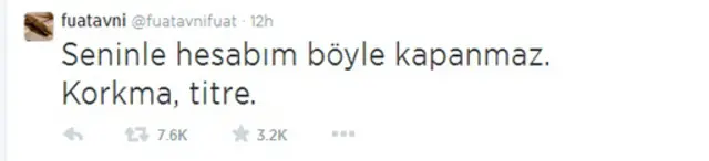 <link type="page"><caption> @fuatavnifuat</caption><url href="https://twitter.com/fuatavnifuat" platform="highweb"/></link> hesabından atılan son tweetlerinden birisinde şöyle demişti: