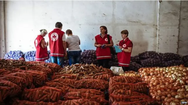 Yardım konvoyunu takip eden BBC muhabiri Steve Rosenberg, bazı kamyonların Cuma günü medya çalışanlarına açıldığını söyledi ve araçların çoğunun boş olmasının dikkat çekici olduğunu belirtti.
