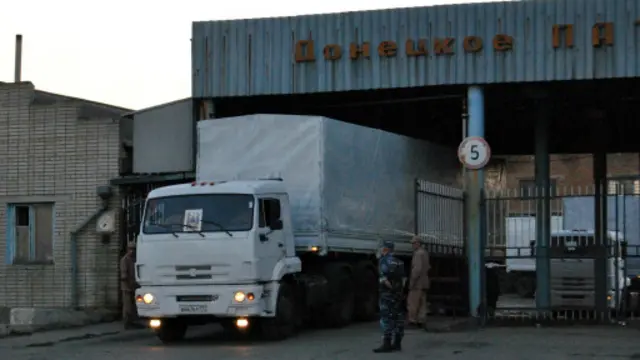 Rus haber ajansı Itar Tass'a bilgi veren Ukraynalı gümrük görevlileri konvoyun ilk kamyonlarının çatışmaların sürdüğü Donetsk yakınlarında gümrük kontrolüne alındığını söyledi.
