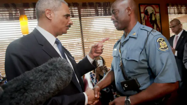 ABD Adalet Bakanı Eric Holder ülkenin Missouri eyaletinin Ferguson kentinde polis tarafından vurularak öldürülen siyah genç Michael Brown'un ailesini ziyaret etti.