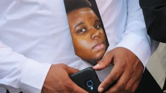 Cenaze törenine katılanlardan bazıları polis memuru Wilson'un suçlu bulunmaması durumunda Ferguson'da gerçek bir ayaklanma başlayabileceğini söylüyor.