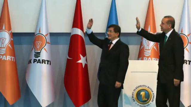 Türkiye’nin 12'nci Cumhurbaşkanı olarak seçilen Recep Tayyip Erdoğan, ‘genel başkan’ sıfatıyla partililere son kez seslendi. AKP’nin, Ankara Arena Spor Salonu’nda düzenlediği 1. Olağanüstü Kongresi’nde ‘tek aday’ Ahmet Davutoğlu, genel başkanlığa seçildi.