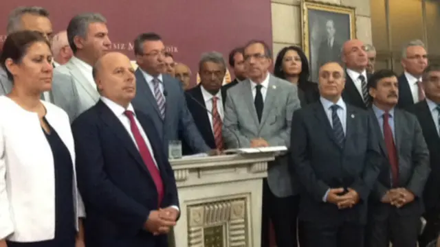 CHP'li vekillerin tepkileri salon dışında da devam etti. CHP Grup Başkanvekili Engin Altay, milletvekilleriyle birlikte bir basın toplantısı düzenledi.