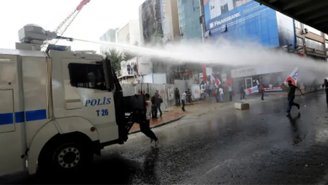 Polis daha sonra bu grubu da biber gazı ve basınçlı su kullanarak dağıttı.