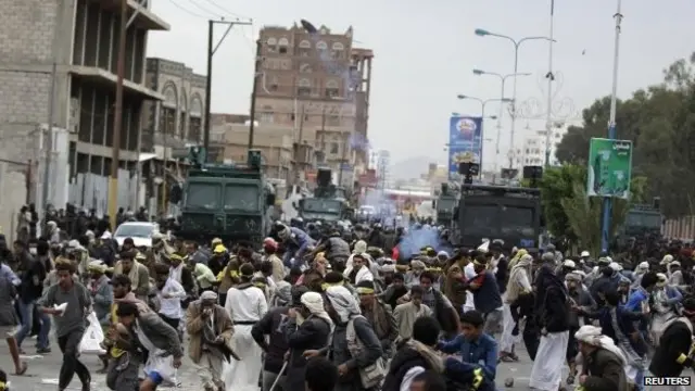 İsyancı liderler Reuters haber ajansına verdikleri demeçte, Sanaa protestolarında iki üyelerinin öldürüldüğünü ve onlarcasının yaralandığını söylüyor.