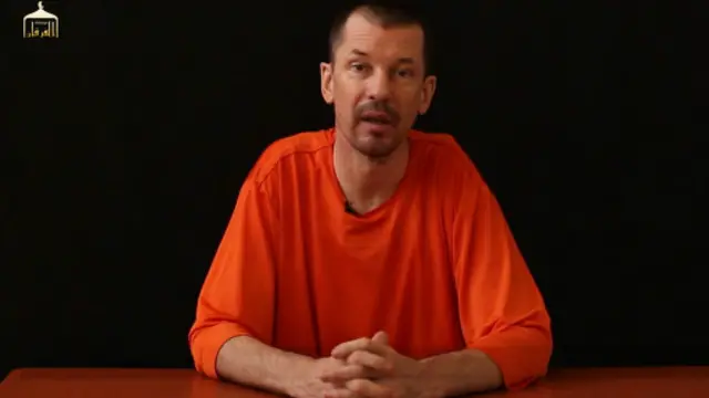 Üzerinde turuncu bir kıyafet olan Cantlie, bir çalışma masasından kameraya konuşuyor. ABD ve İngiltere hükümetlerinin kendisini yüzüstü bıraktığını söylüyor, bu ülkelerin niçin yeni bir savaşa girmekte bu kadar istekli olduklarını soruyor.