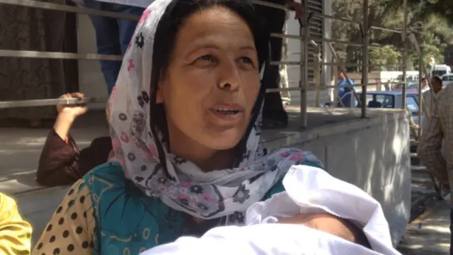 Kucağında bir aylık bebeğiyle, Suruç’un ortasındaki parkta kurulan geçici sağlık merkezine gelen kadınlardan biri...