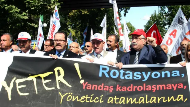 Eğitim Sen, Türk Eğitim Sen, Eğitim İş, Anadolu Eğitim Sen, Aktif Eğitim Sen üyesi eğitimciler, hükümetin eğitim politikalarını protesto etmek için tüm Türkiye’de bir günlük iş bıraktı.