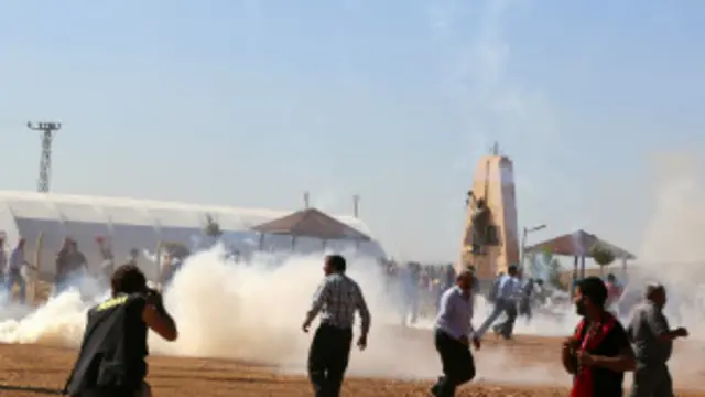 Sınırda toplanan Kürtler ve Suriyeli göçmenlerle polis arasında çatışma çıktı.