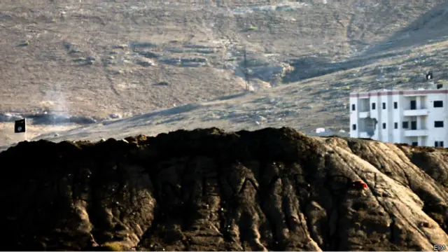 Kentin doğu kesimine giren IŞİD yüksek kesimler ve binalara bayraklarını dikti.