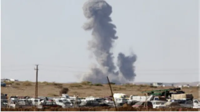 Olay yerinde bulunan görgü tanıkları, koalisyon bombardımanı olduğunu düşündükleri birkaç patlama sesi duyduklarını ve Kobani'den dumanların yükseldiğini söylüyor.