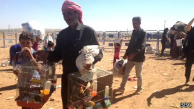Birisi ise, iki kafesin içinde parlak tüylü sarı kuşlarını taşıyor. IŞİD'den kaçarken, kimin yanına ne alacağı, neyi korumak istediği, öncelikleri değişiyor.