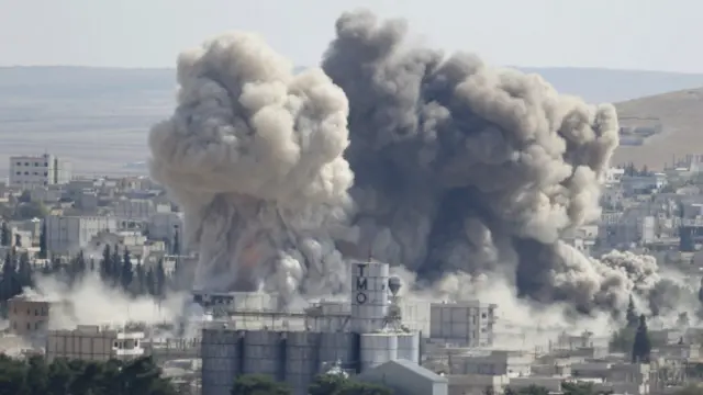 Sınır bölgesindeki BBC muhabiri Kobani'den silahlı çatışma ve bombardıman seslerinin geldiğini belirtiyor.