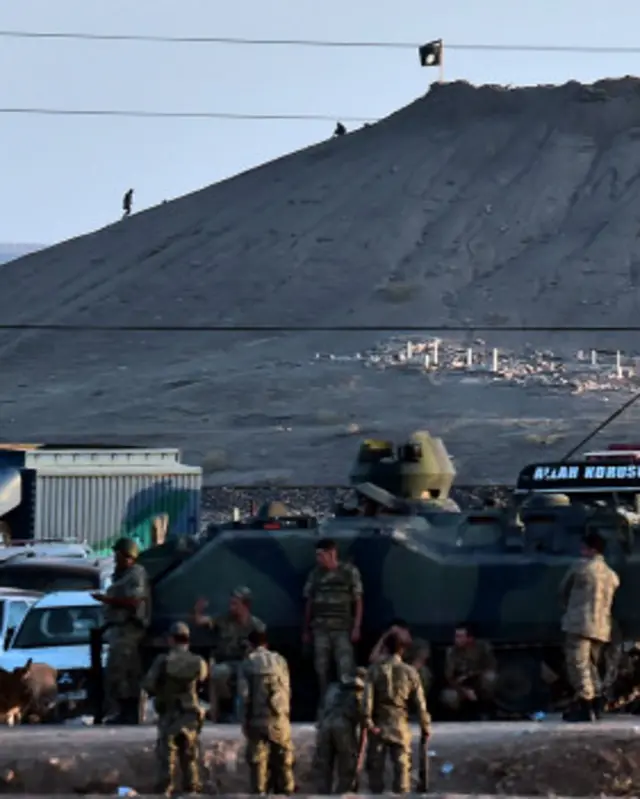Türkiye-Suriye sınırındaki tablo için 'daha çarpıcı olamazdı' sözleriyle başlayan yazıda, "Bir tarafta yükselen kara dumanların altında Kobani'den çatışma sesleri geliyor, diğer tarafta ise Türk askerleri gelişmeleri ilgisizce takip ediyor" deniyor.