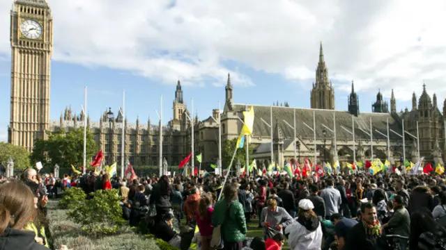Londra'da da parlamento binasının önünde yüzlerce kişi Kobane eyleminde buluştu