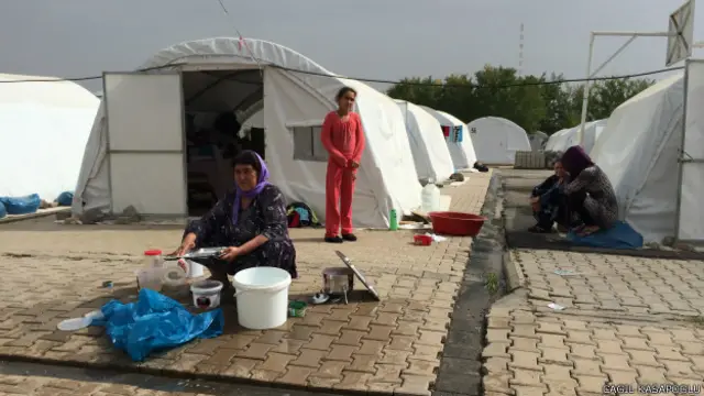 Kobani'den gelip evlerde kalan yaklaşık 4 bin Suriyeli Kürt'ün aksine, "birbirlerinden kopmaktan korktukları için kent içindeki evlere gitmek istemiyorlar."