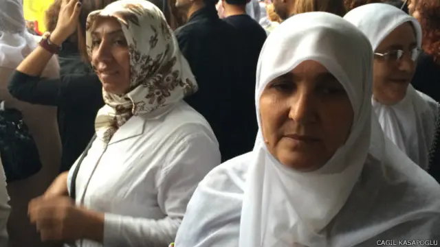 Kobani’ye destek eylemi için Demokratik Toplum Kongresi (DTK) önünde toplanan kalabalık arasında Barış Anneleri’nden Nazime Yürek, ‘hala ete kemiğe bürünmediği’ için eleştirilen çözüm sürecine dair şöyle diyor: