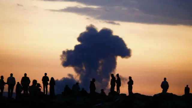 Suruç'ta tepe bir noktadan çatışmaları izleyen görgü tanıklarından biri BBC Türkçe muhabiri Kasapoğlu'na atılan havanlardan birinin Türkiye ile Suriye sınır hattını belirleyen tren rayları boyunca Türkiye sınırına yakın kısmına düştüğünü söyledi.