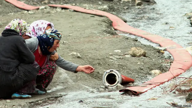 Bazı kadınlar fenalaşıyor. Bazıları ise ocaktan tahliye edilen suyun başına geçerek isyan ediyor.