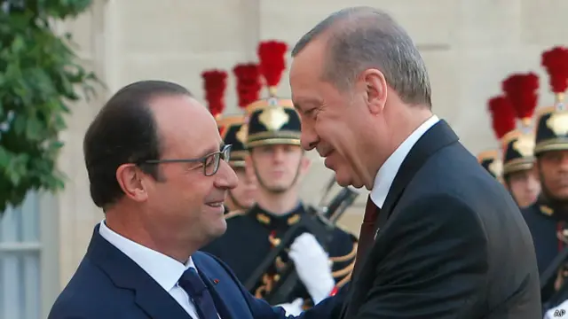 Hollande ise Erdoğan'ın Kobani açıklamalarına "Doğrudur, sadece Kobani yok. Sayın Erdoğan çok haklı. Başka şehirler IŞİD'in tehdidi altında. Bizim için anahtar bir şehir de var, o da Halep... Ama Kobani de var. Şehir boşaltılmış olsa da gerekli desteği vermek durumundayız." diyerek cevap verdi.
