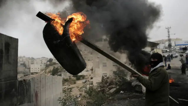 İsrail askerleri, taş fırlatan Filistinli protestoculara göz yaşartıcı gazla karşılık verdi.