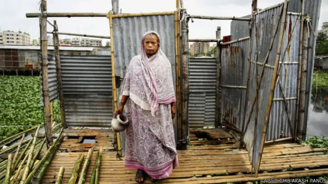 65 yaşındaki üç kız annesi Sukurbanu çocukluğundan beri, Dakka'da gecekondu mahallesi olarak bilinen Rupnagar'da yaşıyor ve suyun üzerine inşa edilen bu platformu tuvalet olarak kullanıyor. Kısa bir süre önce platformdan suya düşmüş. Sık sık rahatsızlanan Sukurbanu, sebebinin ise bu tuvalet olduğunu düşünüyor. Sabah işe giden kızları da tuvalet önünde oluşan uzun kuyruklarda bekliyormuş.