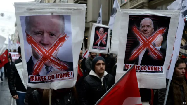 Bu arada, Taksim-Tünel Meydanı'nda toplanan TürkiyeGençlik Birliği üyesi yaklaşık 300 kişilik bir grup, Biden'ı protesto etti.