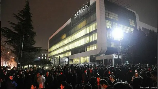 Zaman gazetesinin genel müdürü Ekrem Dumanlı gazete önünde uzun saatler bekleyenlere iki kez çıkıp konuşma yaptı.